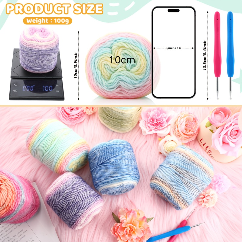 Fil de pastís Ombre en cotó i fibres acríliques, adequat per fer bufandes, mantons, mantes i roba