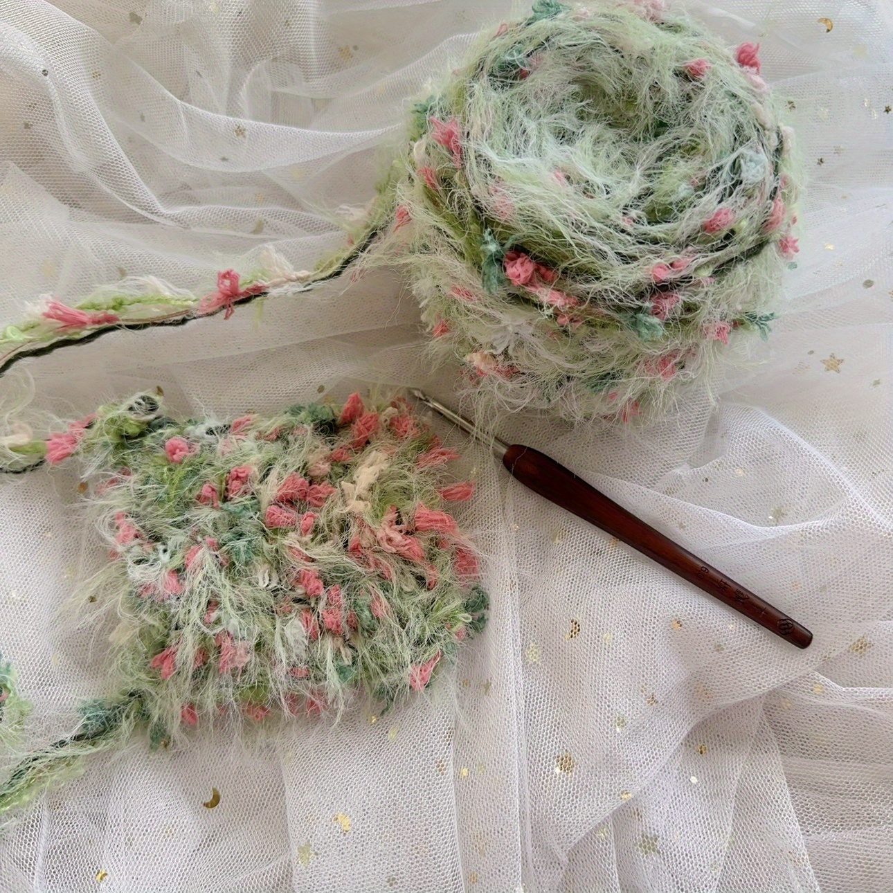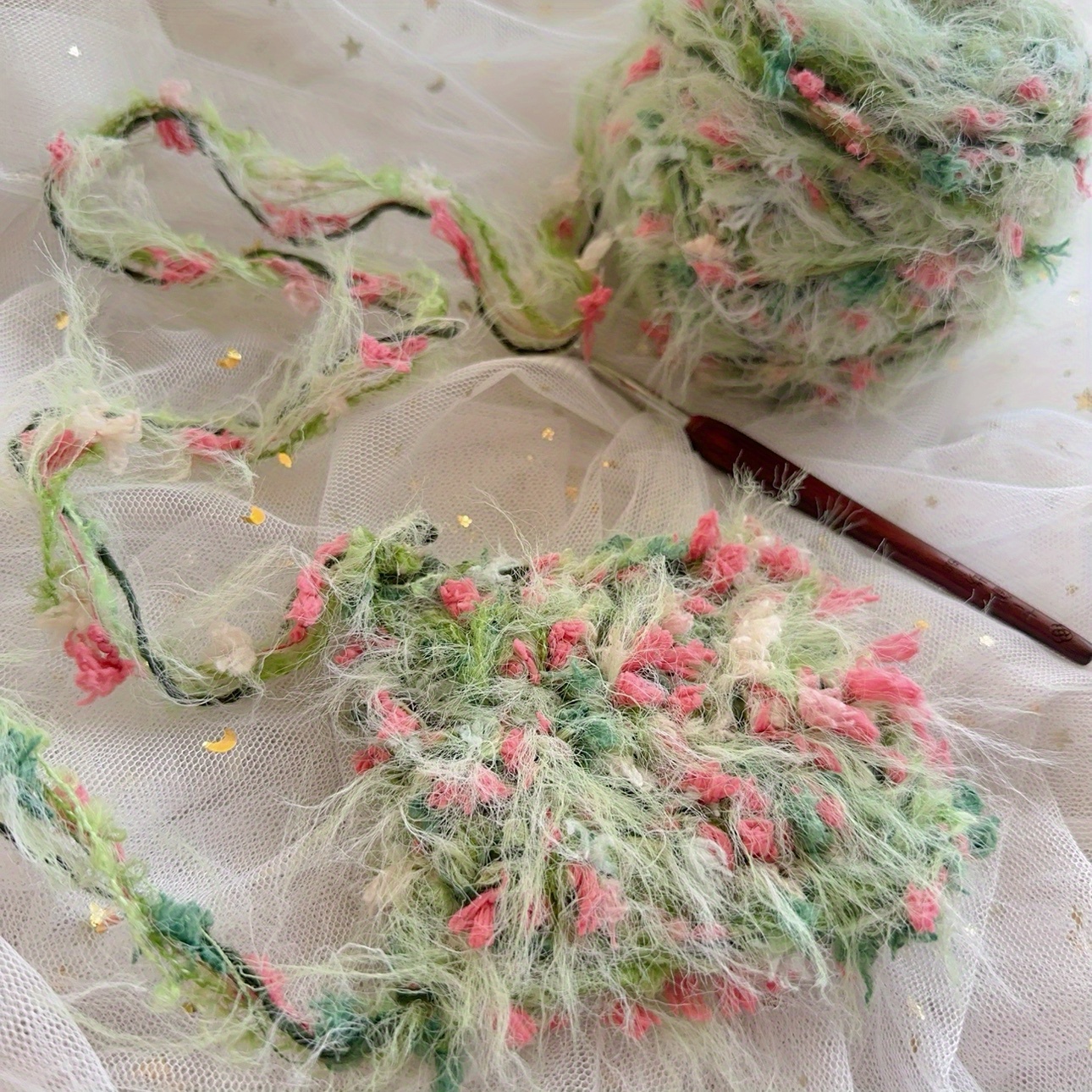 Monet Garden Sèrie de fil barrejat a mà flor mar bossa teixida a mà banda per als cabells llana suau regal de llana decorativa