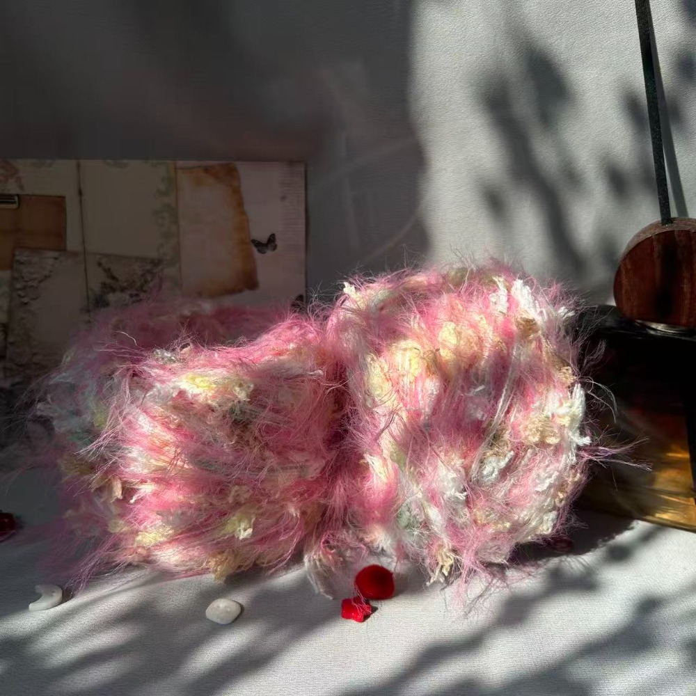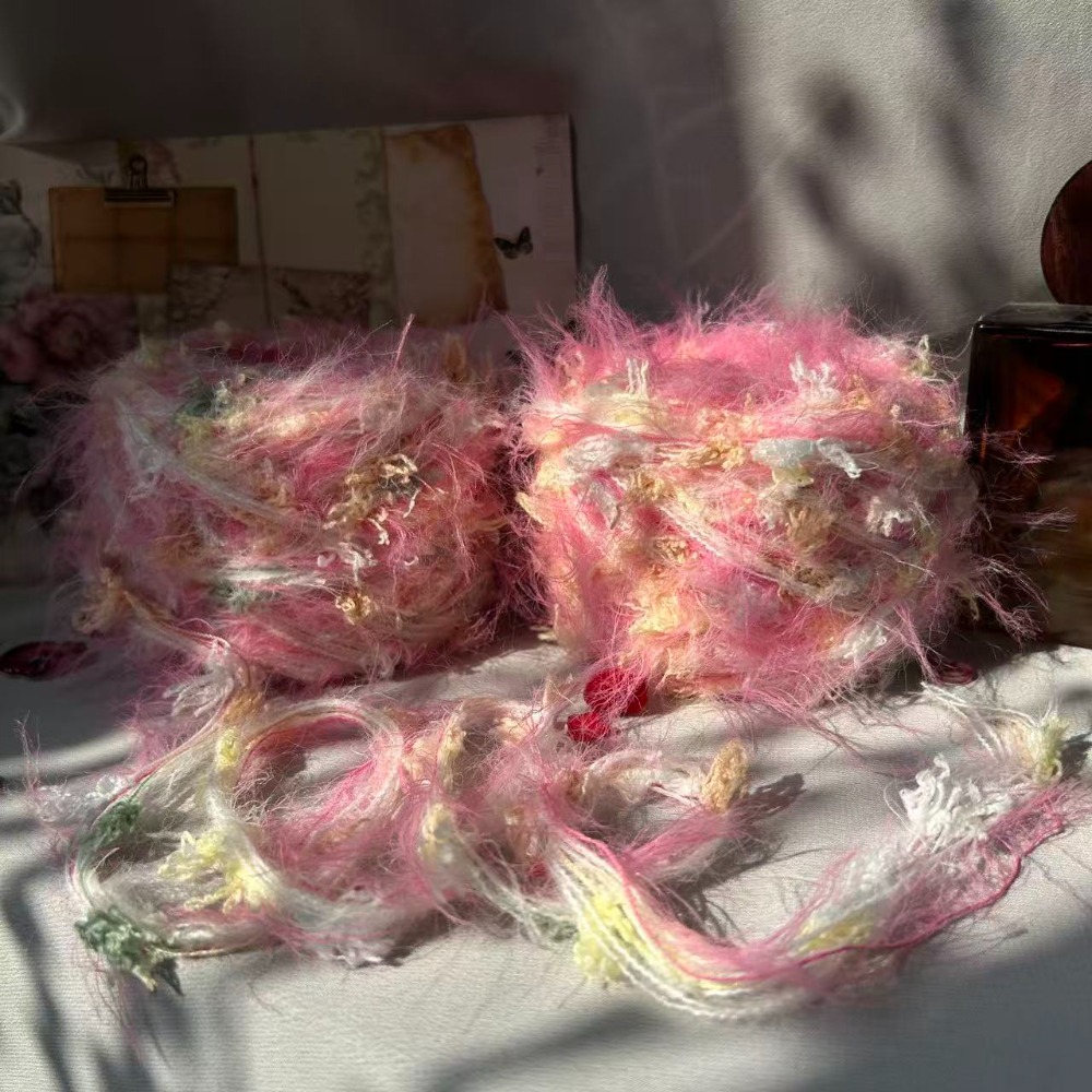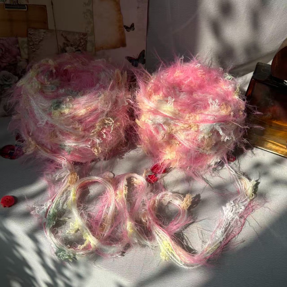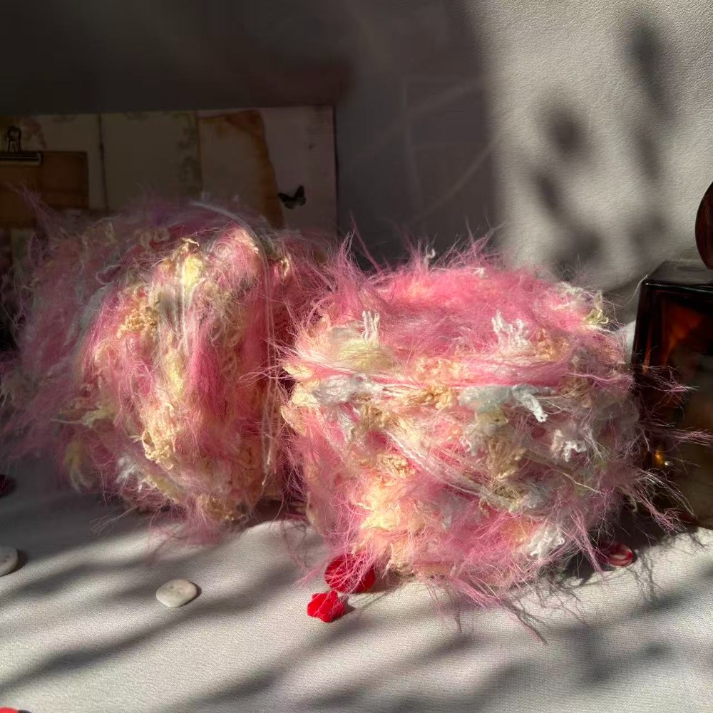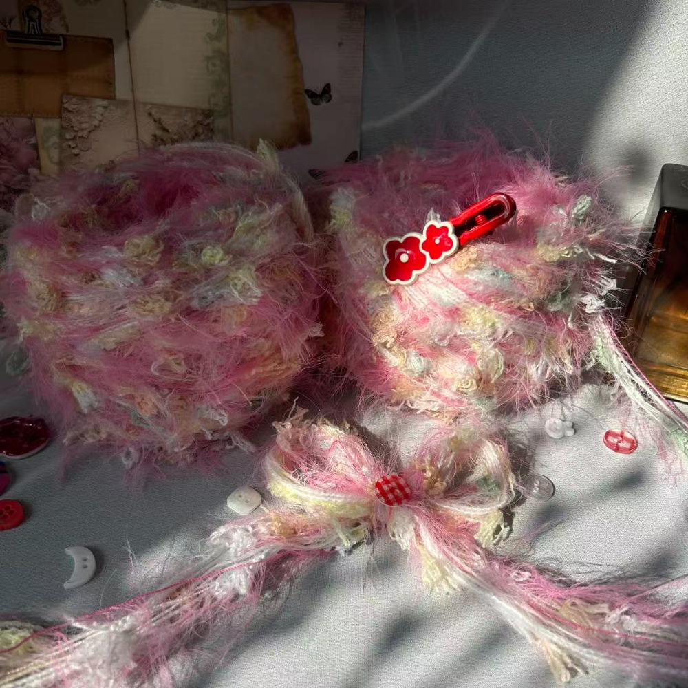 100 g/peça Flor de cirerer rosa llet groc sensació de núvol fil mixt Bola de fil esponjosa de visó d'imitació Bossa de mocador feta a mà accessoris per al cabell fil especial per atrapasomnis