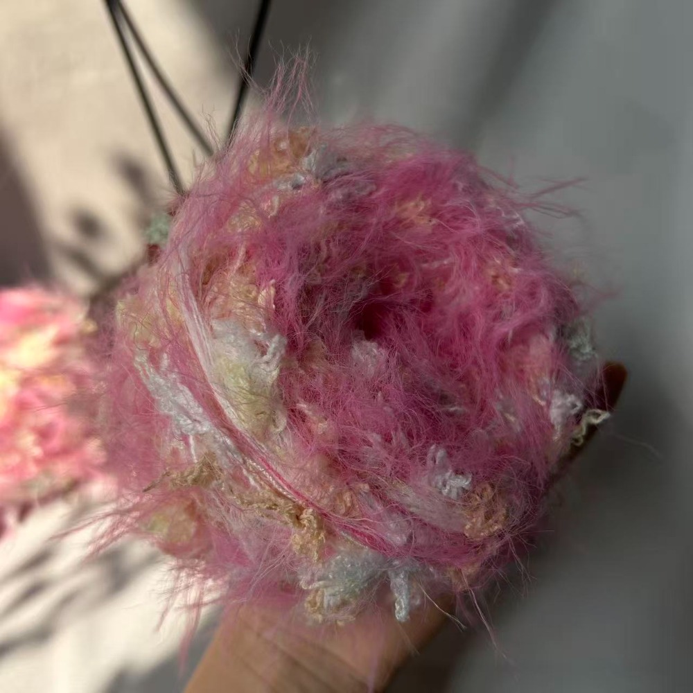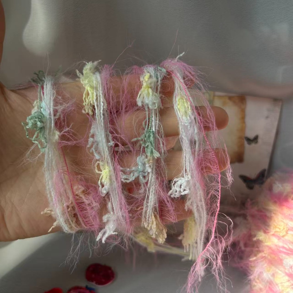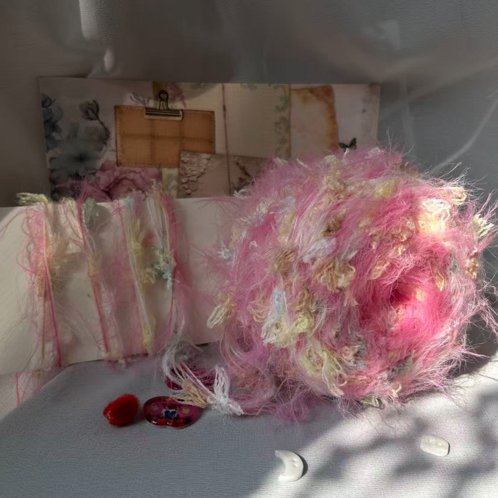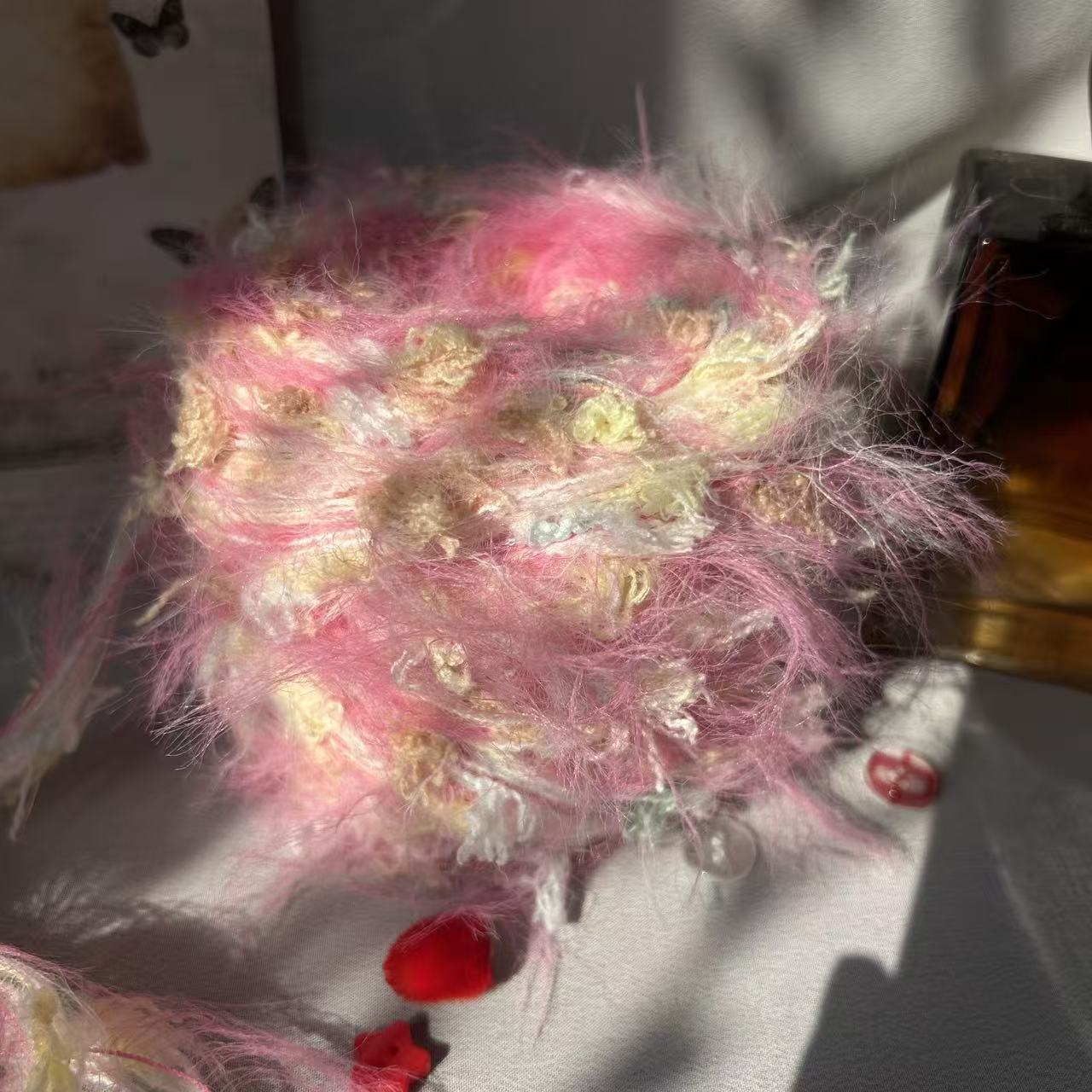 100 g/peça Flor de cirerer rosa llet groc sensació de núvol fil mixt Bola de fil esponjosa de visó d'imitació Bossa de mocador feta a mà accessoris per al cabell fil especial per atrapasomnis