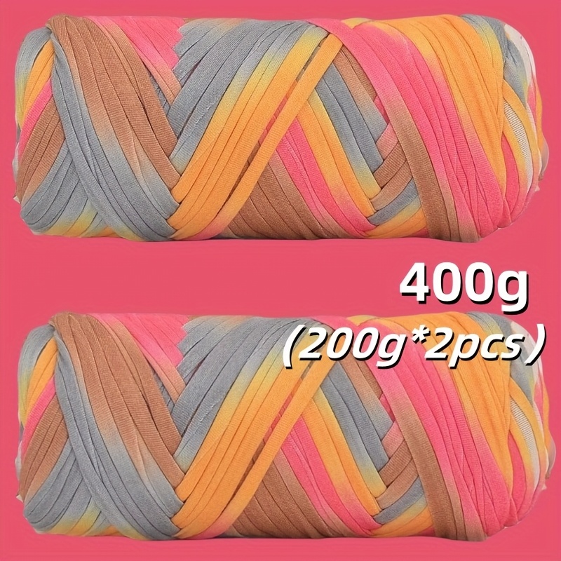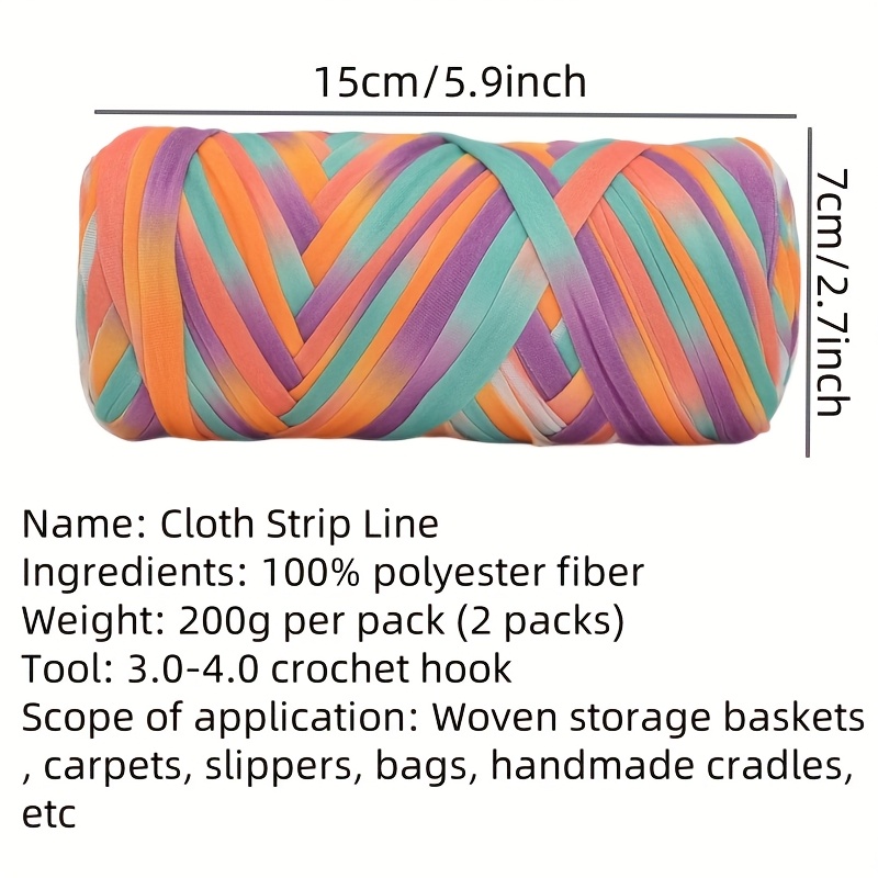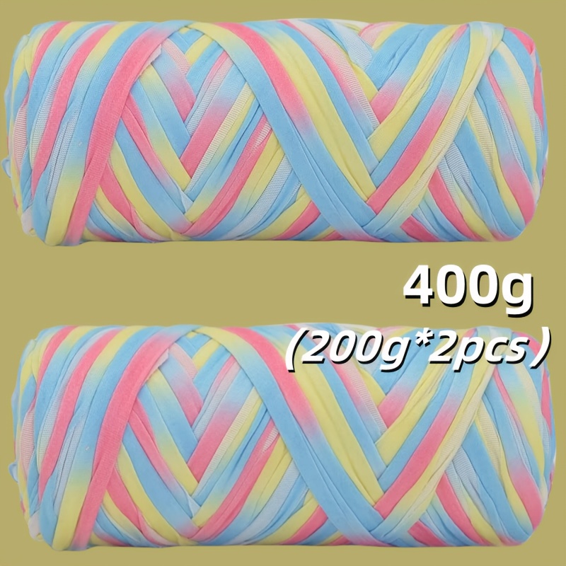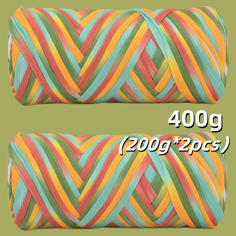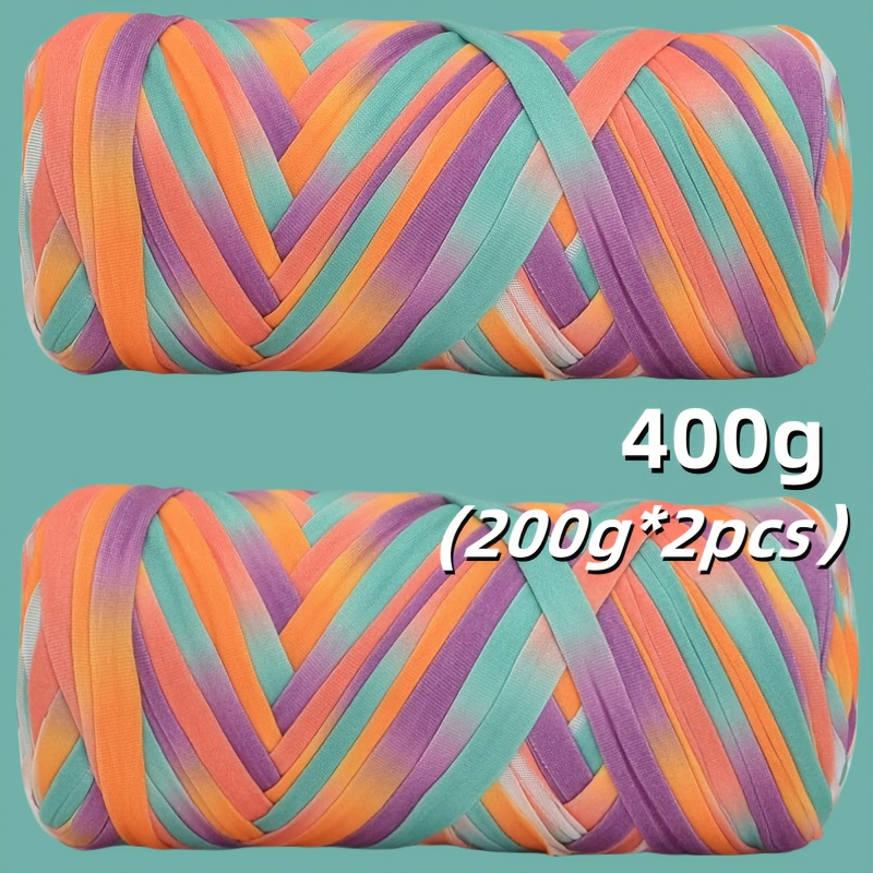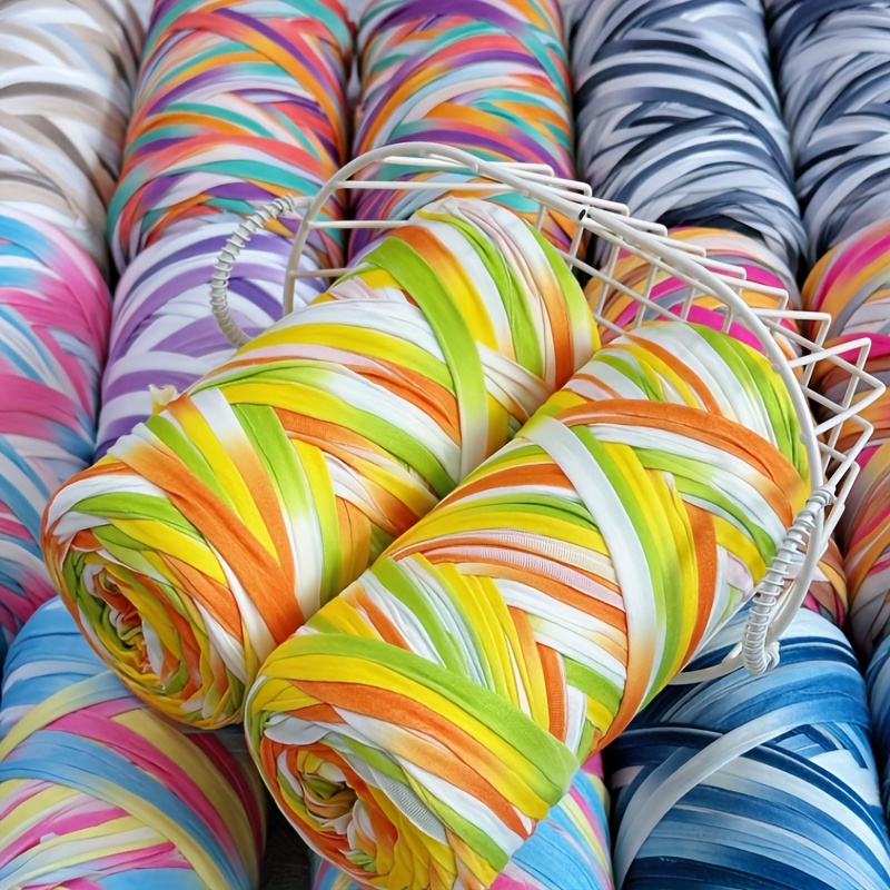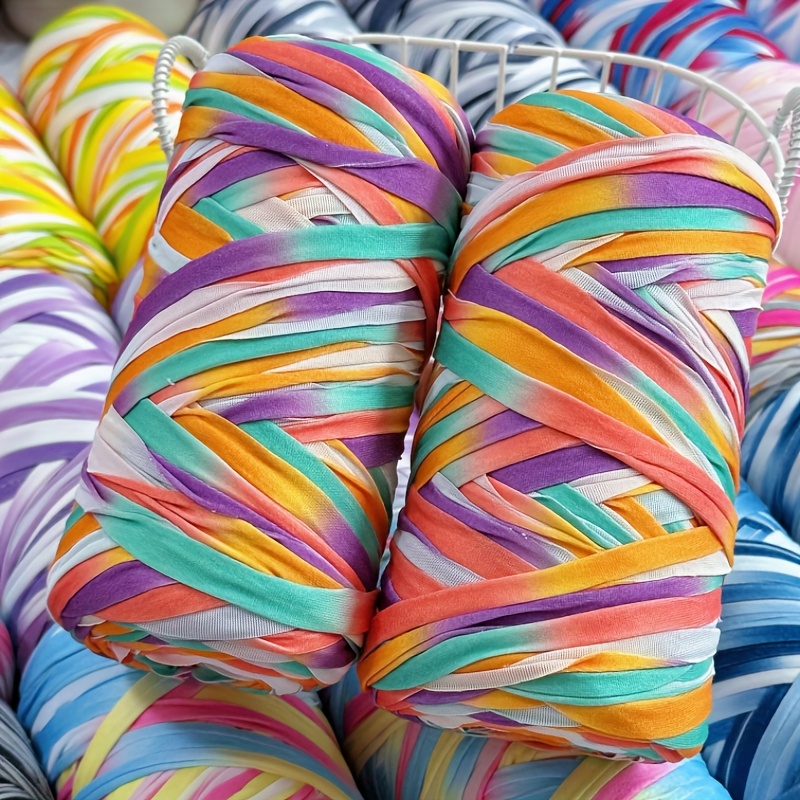 Benang T-Shirt Jalur Warna Kecerunan Sangat Elastik - Benang Mengait dan Mengait Super Lembut - Bakul Penyimpanan Tenunan Projek DIY Serbaguna, Permaidani, Selipar, Beg, Buaian Buatan Tangan, dsb.