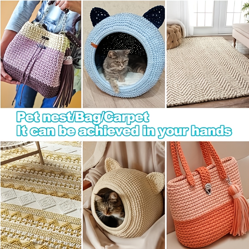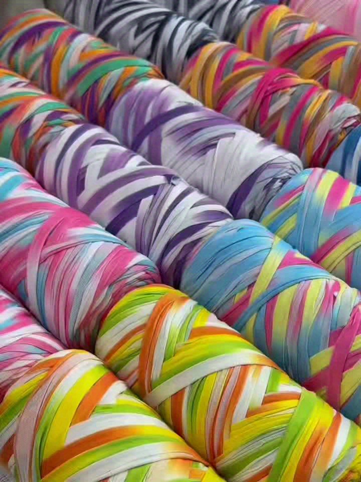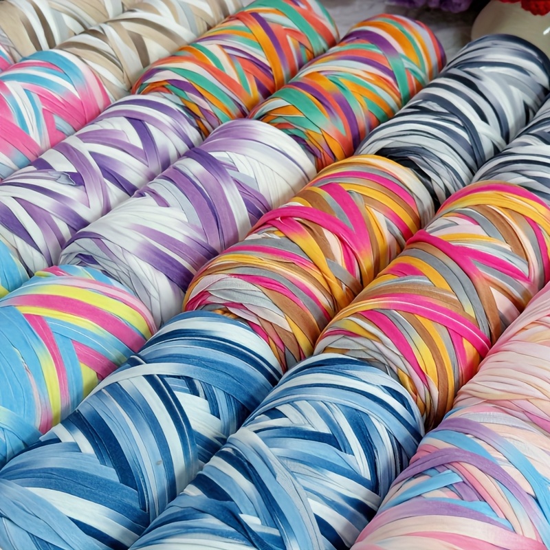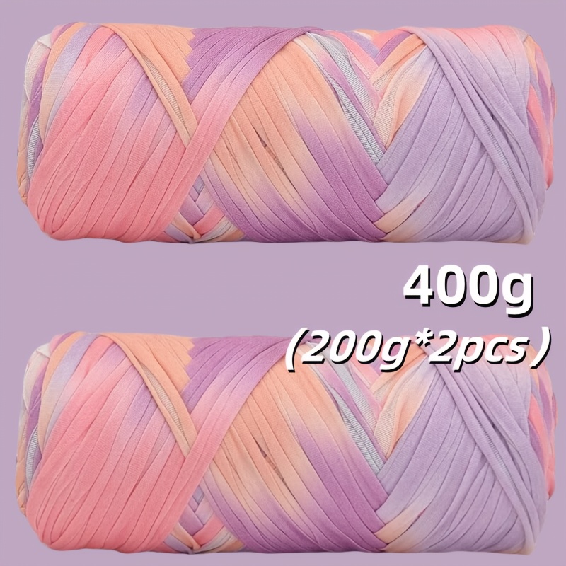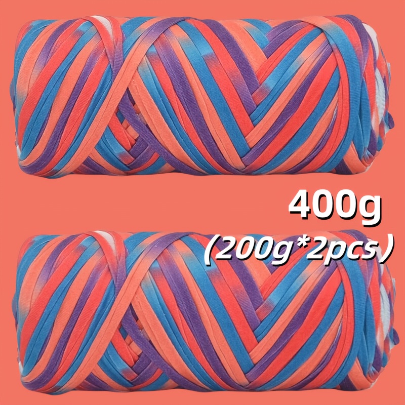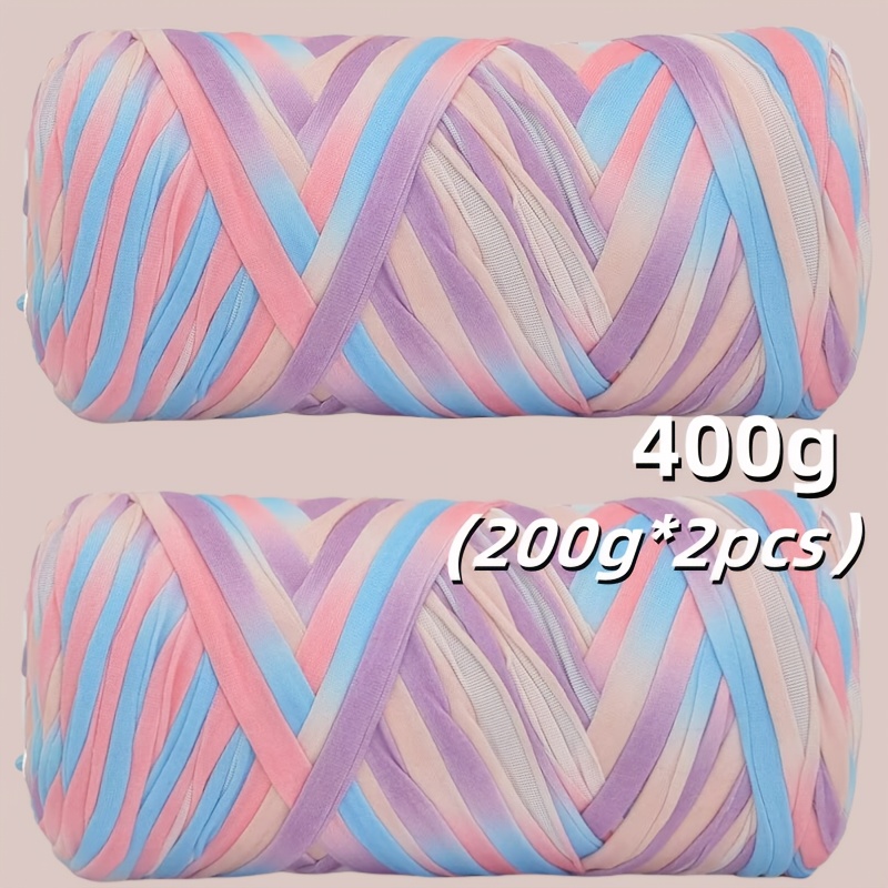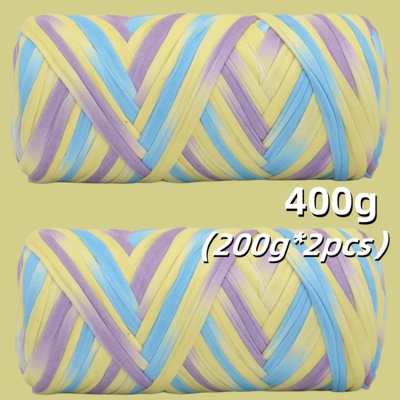 Benang T-Shirt Jalur Warna Kecerunan Sangat Elastik - Benang Mengait dan Mengait Super Lembut - Bakul Penyimpanan Tenunan Projek DIY Serbaguna, Permaidani, Selipar, Beg, Buaian Buatan Tangan, dsb.