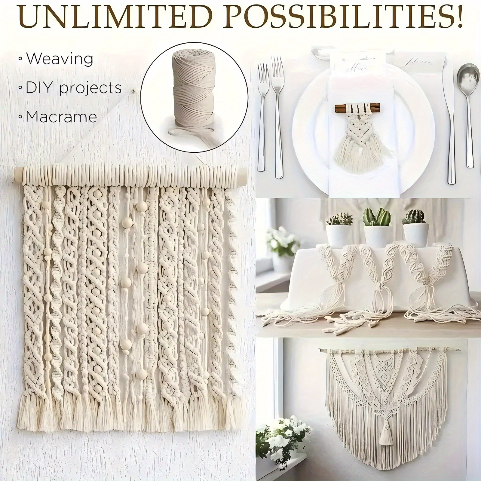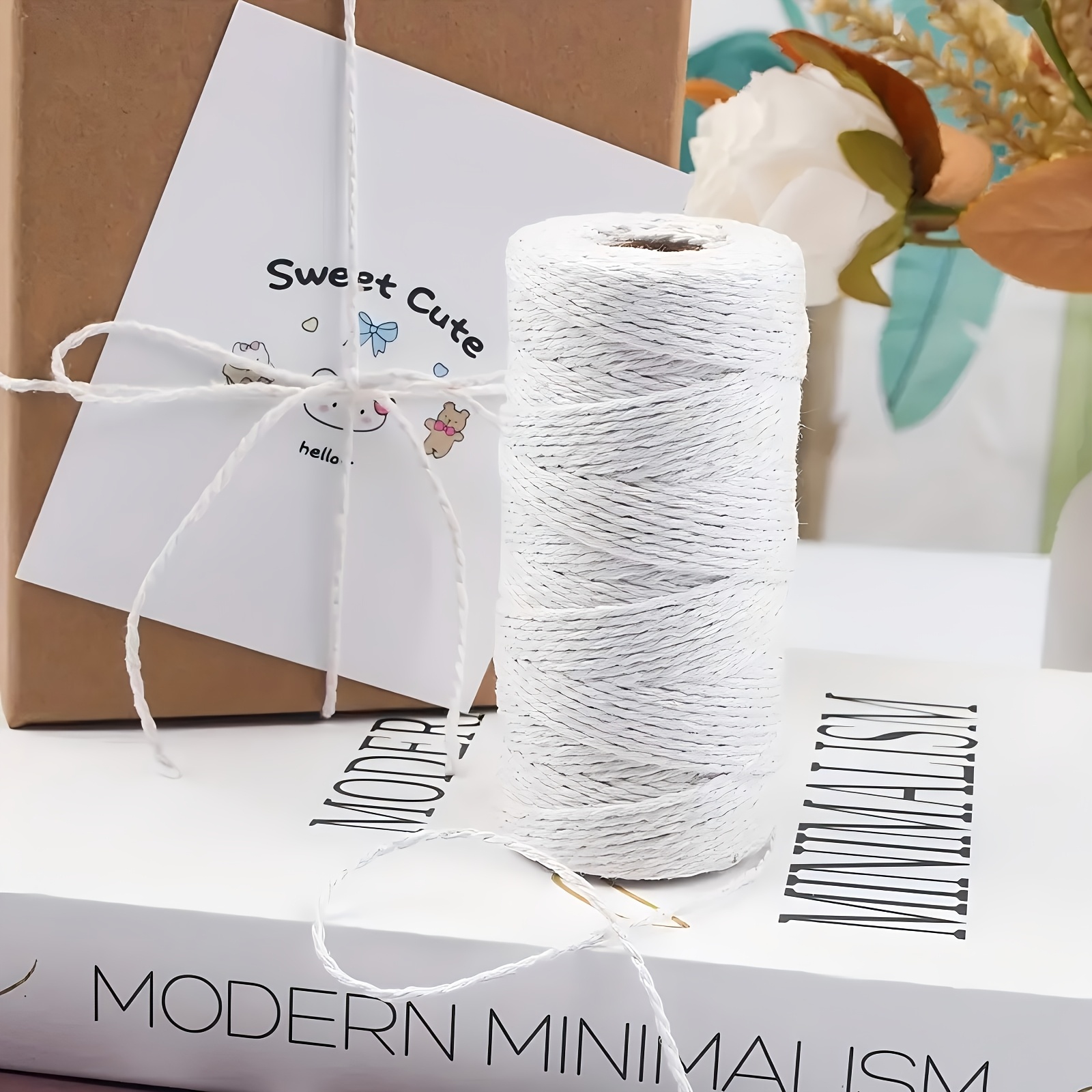 1卷220码高品质天然白色麻绳,Macrame绳,适用于手工编织、家居装饰、抽绳袋封口、礼品包装、园艺、多用途优质工艺绳、编织绳
