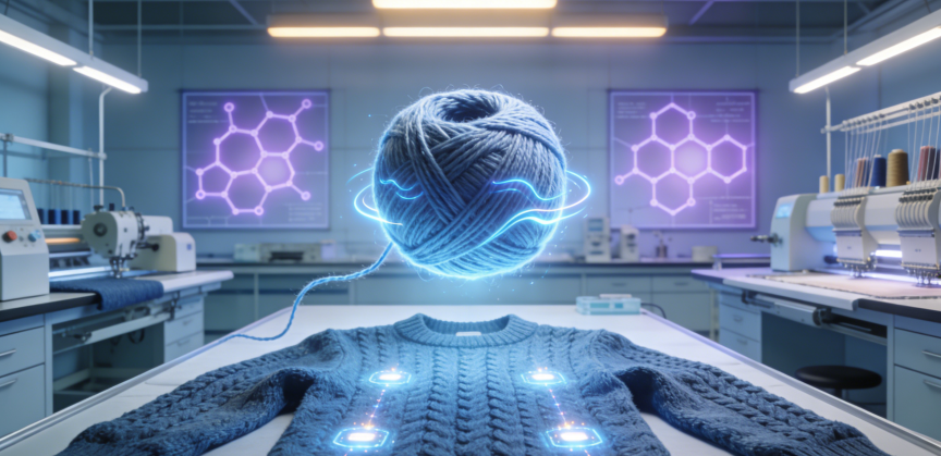 - Полностью сенсорная умная пряжа: интеграция нескольких датчиков температуры, влажности, давления и частоты сердечных сокращений превращает одежду в «терминал мониторинга здоровья».